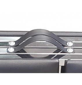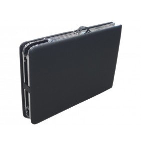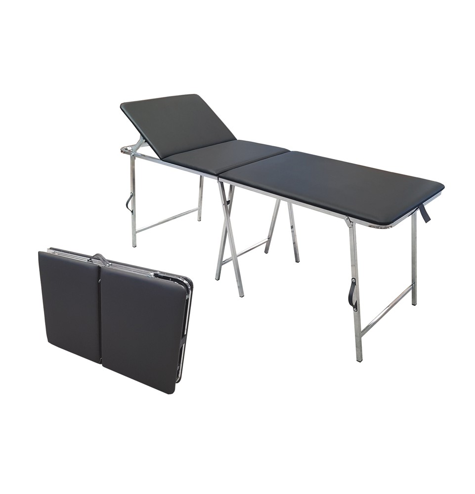 Lettino pieghevole a valigia con struttura in acciaio cromato.
