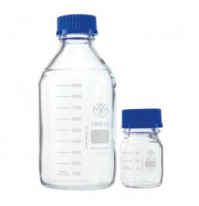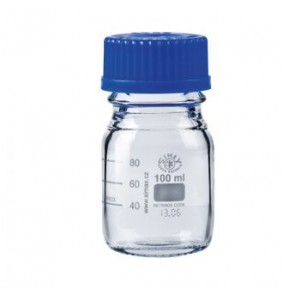 Realizzata in vetro borosilicato 3.3. Completamente autoclavabile a 140 °C. Filettatura GL 45 (ad eccezione del modello da 50 ml), conforme a ISO 4796. Include anello salvagoccia e tappo blu in polipropilene