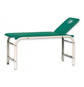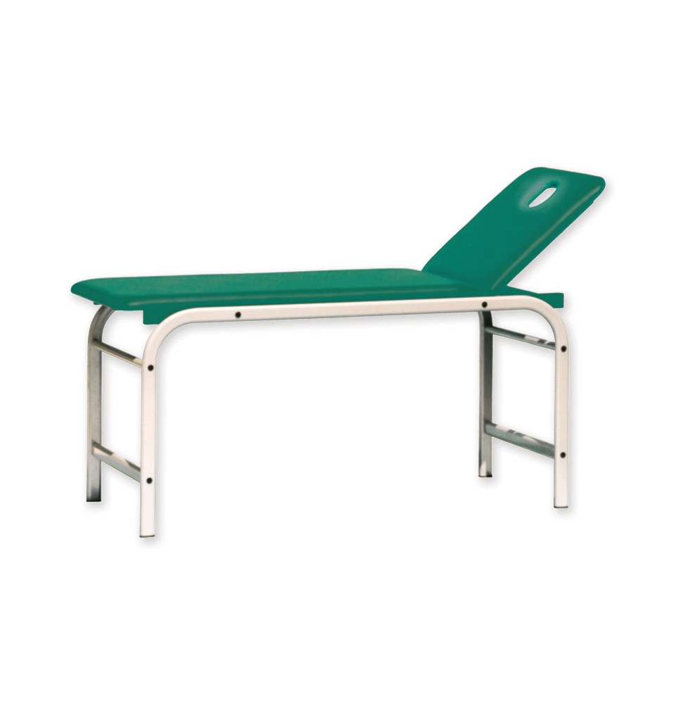 Struttura in tubo ovale robusta ed elegante 50 x 25 mm, verniciata con polveri epossidiche colore grigio metallizzato. Rivestimento lavabile, ignifugo, materiale similpelle classe 1 IM con imbottitura ad alta densità. Testata regolabile tramite sistema meccanico (massimo 75°).