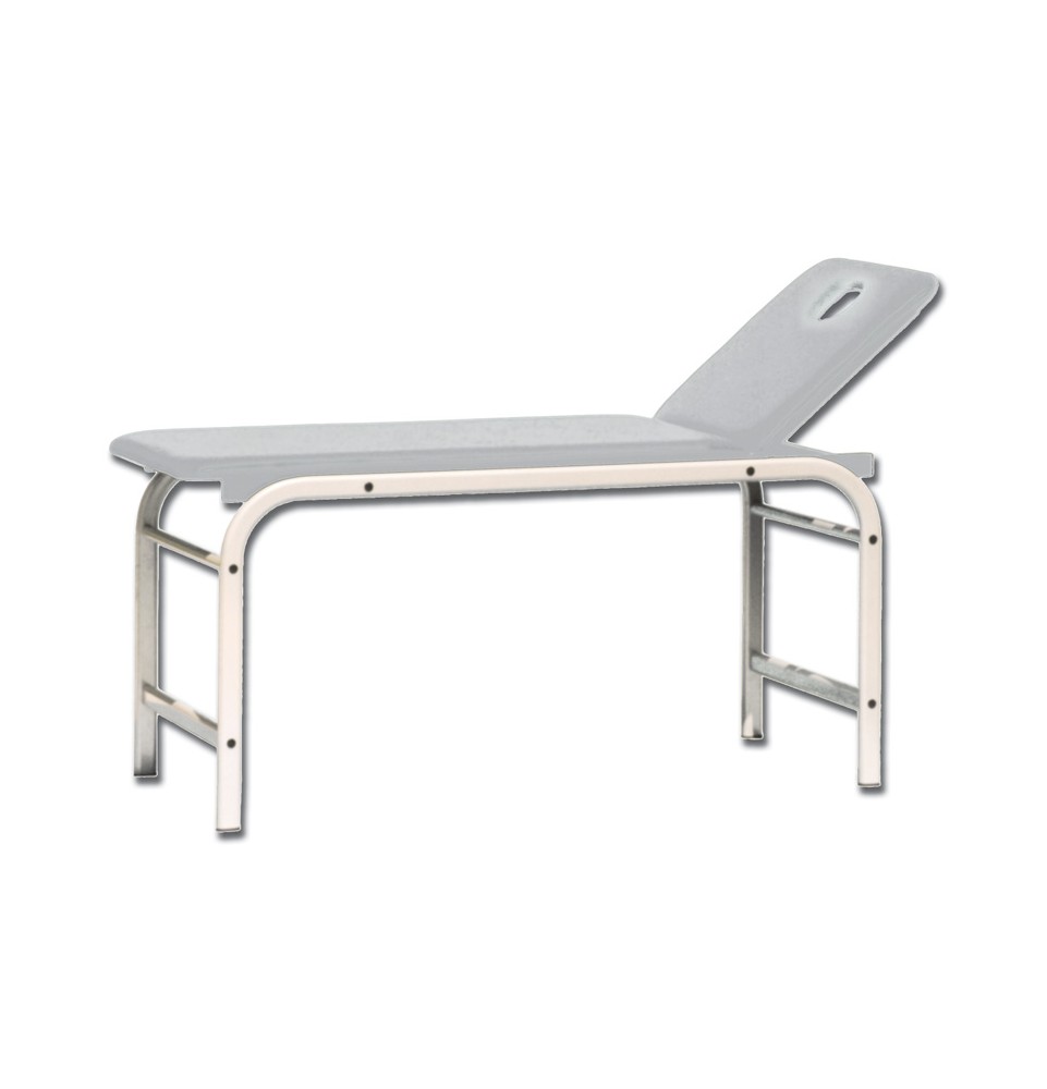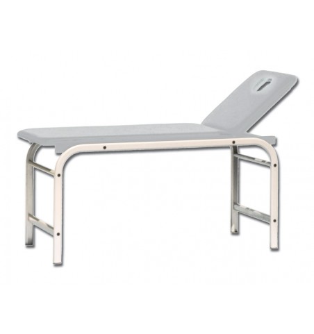 Struttura in tubo ovale robusta ed elegante 50 x 25 mm, verniciata con polveri epossidiche colore grigio metallizzato. Rivestimento lavabile, ignifugo, materiale similpelle classe 1 IM con imbottitura ad alta densità. Testata regolabile tramite sistema meccanico (massimo 75°).