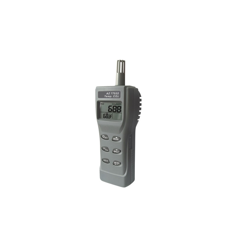 Misurazione di CO2 (0 – 9999 ppm) e temperatura (-10 + 60 °C). Precisione CO2: ± 30 ppm ± 5% della lettura (0 – 5000 ppm) e ±10% della lettura nel resto del range. Precisione della temperatura: ± 0,6 °C. Ideale per la misurazione della qualità dell’aria interna (IAQ). Utilizza la tecnologia NDIR (sensore a infrarossi non dispersivo) per garantire affidabilità e stabilità a lungo termine. Allarmi acustici, funzione massima, minima, media e « Hold ». Alimentazione: 4 batterie AA (incluse). Include valigetta di trasporto. Garanzia di 2 anni