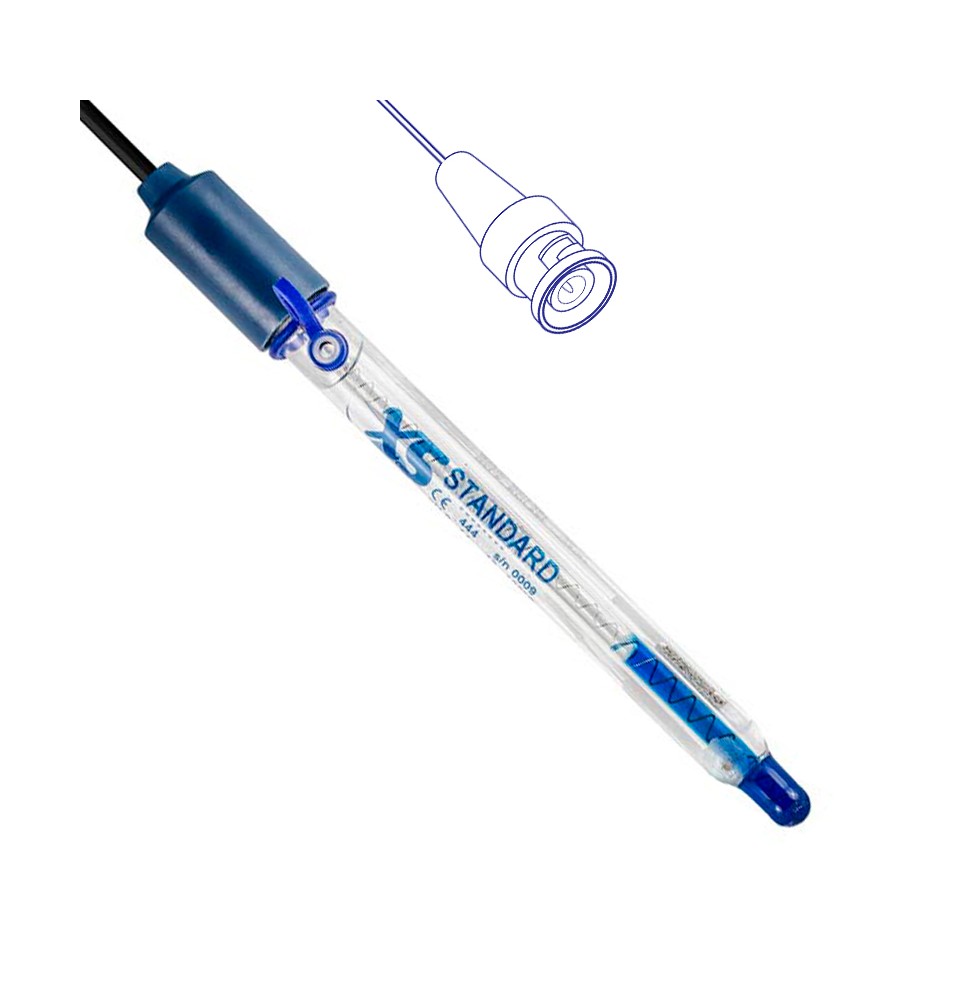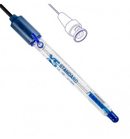 Elettrodo di pH combinato, lunghezza mm 120 con cavo fisso spina BNC. Corpo in vetro (Ø mm 12) e membrana cilindrica, per usi generali. Elettrolita KCl 3M ricaricabile. Eccellente resistenza chimica e facile da pulire.