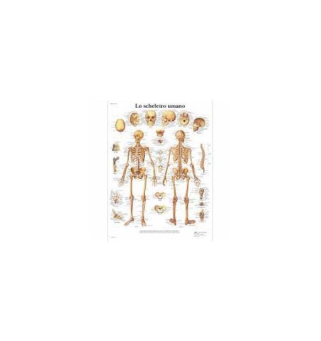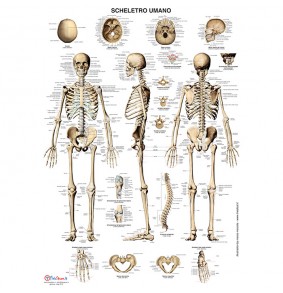Stampata su carta fotografica, laminata, di altissima qualità, è la rappresentazione fedele dello scheletro umano e nel dettaglio: cranio, colonna vertebrale, arti superiori e inferiori, piede, mano e bacino.