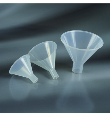 In polipropilene, autoclavabili, adatti per il travaso di polveri o di grandi volumi di liquido. Ottima resistenza chimica.