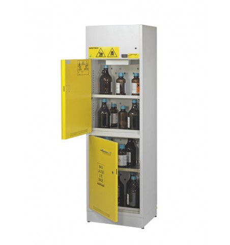 Armadio di sicurezza aspirato e filtrato per lo stoccaggio di 90 litri di prodotti chimici, acidi e basi, conforme alle norme EN61010-1, EN16121, EN16122. Marchio CE - Certificato TÜV