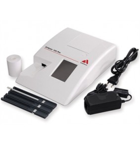 • Misurazioni: - 50 misurazioni orarie in modalità di risparmio - 120 misurazioni orarie in modalità rapida • Memoria: 3.000 risultati di test paziente e 1.000 risultati controllo qualità • Display: Schermo touchscreen LCD 3,5’’ QVGA (risoluzione 240x320) • Stampante: Termica a bassa rumorosità con rotolo per circa 280 misurazioni • Stampa: Numero della misurazione in corso, data ed ora, matricola dell’apparecchio, ID del paziente, asterisco sulla patologia risultante, parametri stampabili in unità SI, convenzionali o arbitrarie • Sensibilità: 5 livelli regolabili a seconda delle esigenze individuali • Tipo: lunghezza d’onda di ri?ettanza fotometro: 505, 530, 620, 660 nm • Interfaccia: porta seriale RS232, USB A, USB B, PS2 (tastiera esterna, lettore codice a barre), card micro SD, porta Ethernet, protocollo HL7 • Dimensioni: 190 x 260 x 77 mm (LxPxH) • Peso: 1,5 kg • Alimentazione: 100-240V 50-60 Hz