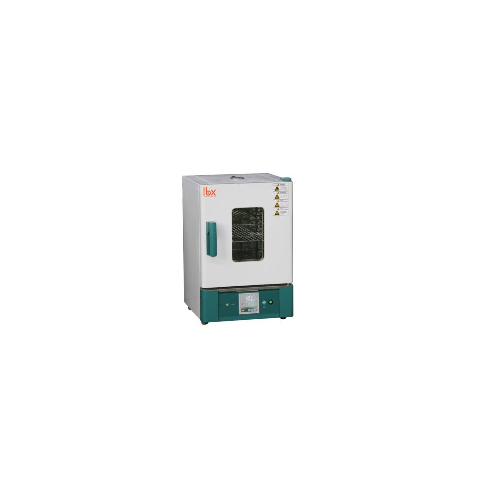 Struttura in metallo verniciato con resina epossidica. Camera interna in acciaio inox. Per temperature regolabili da 40 °C a 300 °C. Accuratezza: 0,1 °C. Fluttuazione della Tª: ±1 °C. Regolazione della temperatura tramite microprocessore con funzioni di protezione da surriscaldamento, allarme per guasto sensore, selezione temperatura di lavoro fissa, timer (0-9999 min), correzione della deviazione, blocco di sicurezza, ecc. Omogeneità e stabilità della temperatura: ±2,5 %. Piedini regolabili per facilitare l’installazione e la stabilizzazione della stufa. Sportello con finestra apribile a 180° con doppio vetro di protezione termica per controllo esterno, senza variazioni di temperatura nella camera interna. Sistema di circolazione dell’aria a circolazione forzata per mezzo di un ventilatore con un interruttore di arresto che consente anche di lavorare attraverso un sistema di circolazione dell’aria a convezione naturale (eccetto per la stufa DOVF-230-001, che non ha interruttore). Facile da pulire. Fornita con due vassoi rack regolabili in altezza (possibilità di caricare più vassoi, vedere la tabella). 220-240 V/50-60 Hz. Garanzia di 2 anni